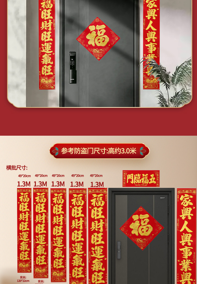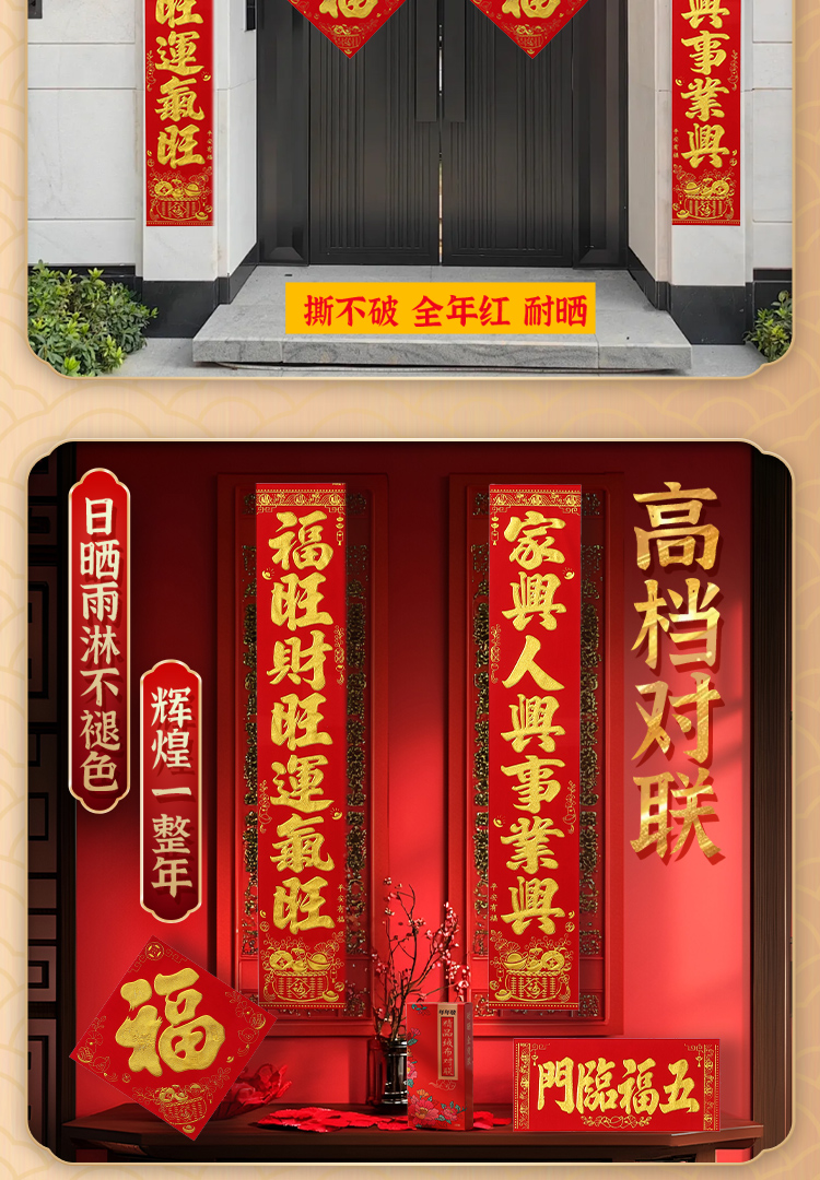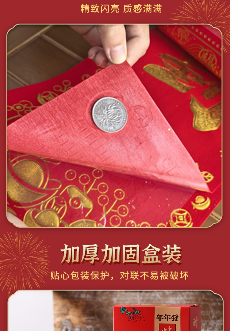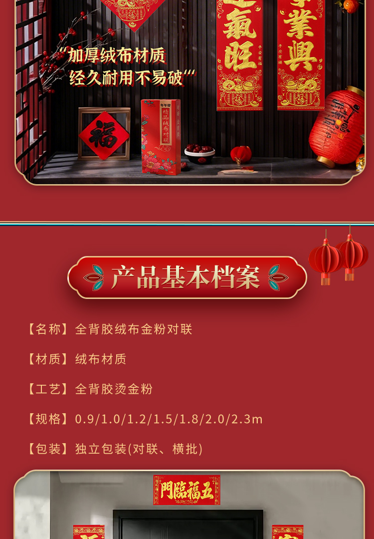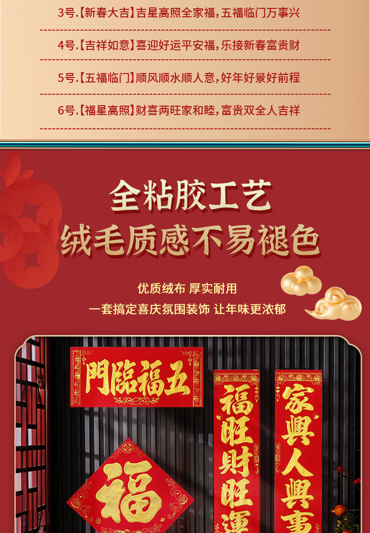 2026年节庆用品新春对联绒布自粘胶布艺用品防风防晒烫金工艺